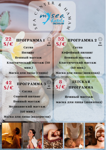 MySea Spa Center &HamamЗдравствуйте! Приглашаем вас посетить наш хамам. Вы можете выбрать подходящую для себя программу, включающую комплекс услуг, таких как сауна, пилинг, пенный массаж, общий массаж всего тела и маска для лица. Наши профессиональные массажисты имеют сертификаты по большому количеству разнообразных видов массажа и проконсультируют вас по вопросам здоровья вашего опорно-двигательного аппарата. При покупке курса массажа более 3-х сеансов предоставляются скидки! Подарите себе качественный отдых без ущерба для бюджета!